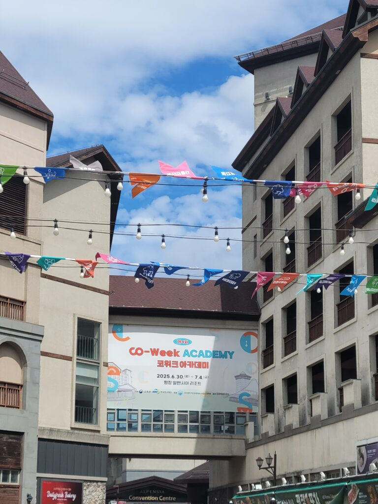 코위크는 전국에 있는 여러학교에서 참여해서, 여러학교의 교수님들이 오셔서 강의를 하시는 것을 들을 수 있어요. 4박 5일 동안 주중에 진행 되고, 다른 학교 학생들과 다른 학교 교수님과 함께 원하는 강의를 신청해서 들을 수 있어요. 올해는 4회로, 강원도 평창 알펜시아에서 열렸어요. 지금까지는, 계속 학교에서 열렸는데, 이례적으로 스키장에서 열렸어요. 기간은 6/31 ~ 7/4일에 있었어요. 신청은 아마 한 5월 쯤에 했던 거 같아요.